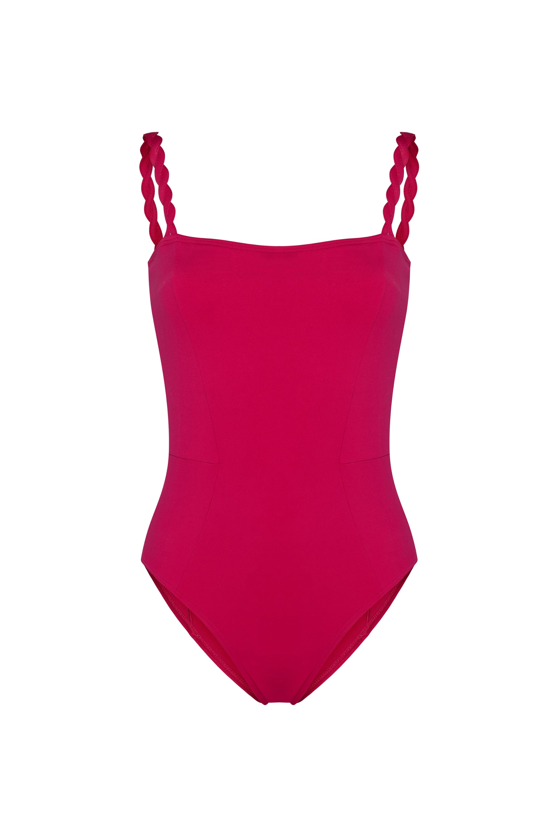 The KARINA swimsuit is very elegant. It is constructed around geometric lines that define the body shape. A lasercut braid trim, that is a signature element of the collection, form the swimsuit's straps. It comes with a removable padding on the bust for extra support and comfort.