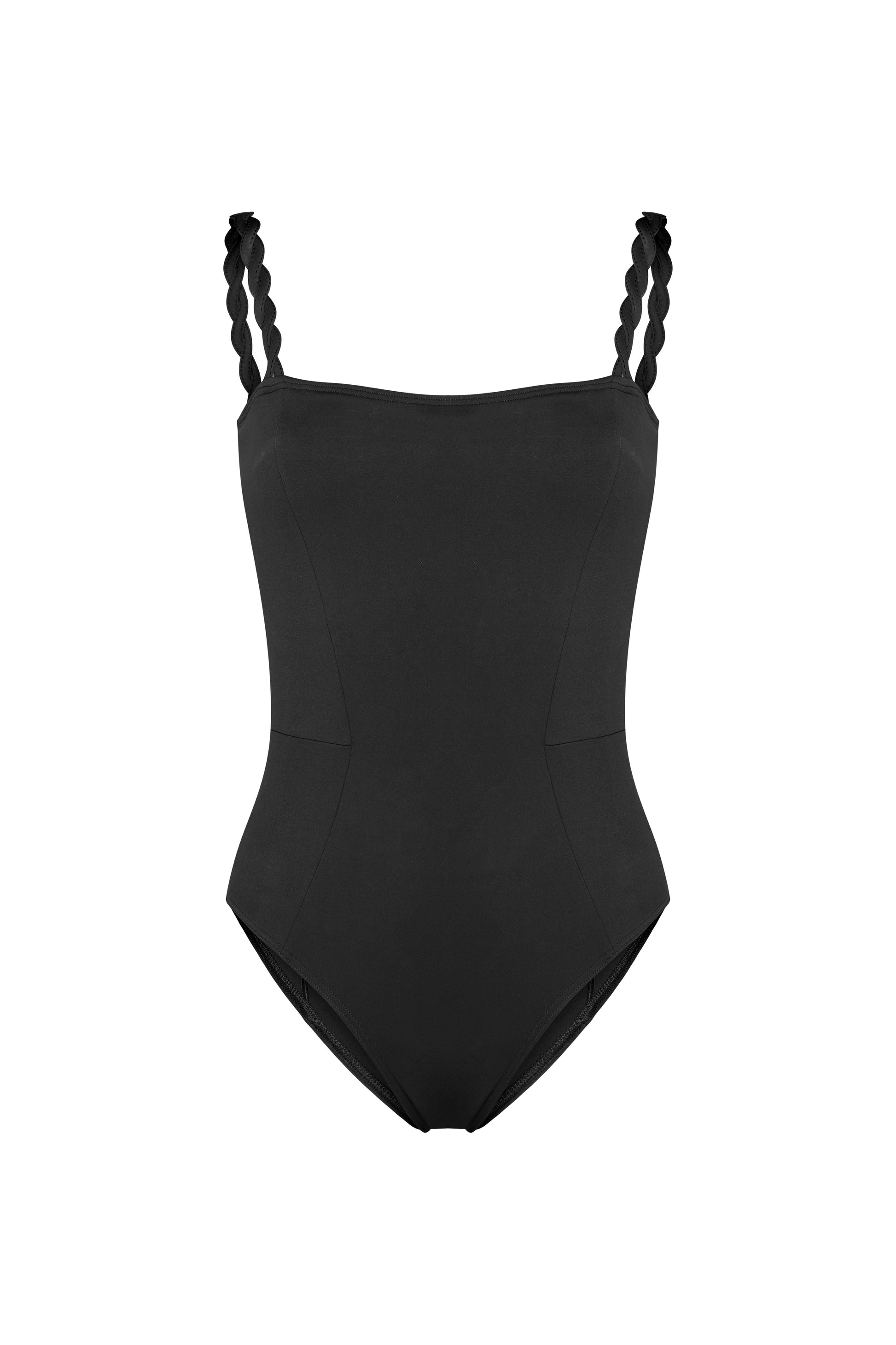The KARINA swimsuit is very elegant. It is constructed around geometric lines that define the body shape. A lasercut braid trim, that is a signature element of the collection, form the swimsuit's straps. It comes with a removable padding on the bust for extra support and comfort.